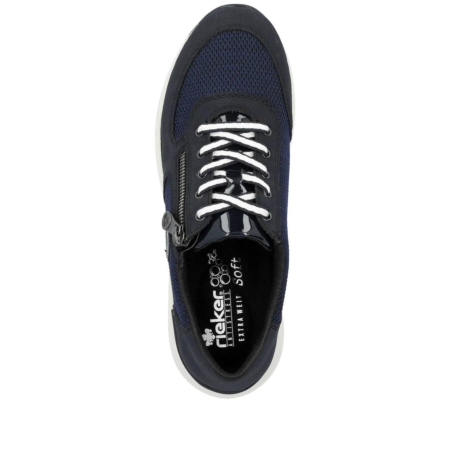 Now It’S Getting Sporty. With This Everyday Navy Blue Rieker Sneaker Low For Women You Are Always Well Dressed And Can Rely On Maximum Comfort. The Clever Combination Of Zipper And Lacing Guarantees A Perfect Fit And The Best Possible Hold. The Embossed Logo On The Side Gives The Shoe That Certain Something. With The Lightweight And Shock-Absorbing Sole, Your Feet Will Be Pampered With Every Step. The Sneakers Have A Padded And Removable Insole That Is Like A Vacation For Your Feet! The Extra Wide H Offers Enough Space So That The Feet Feel Comfortable Even When Worn For Longer Periods. 100% Favorite Shoe Potential!