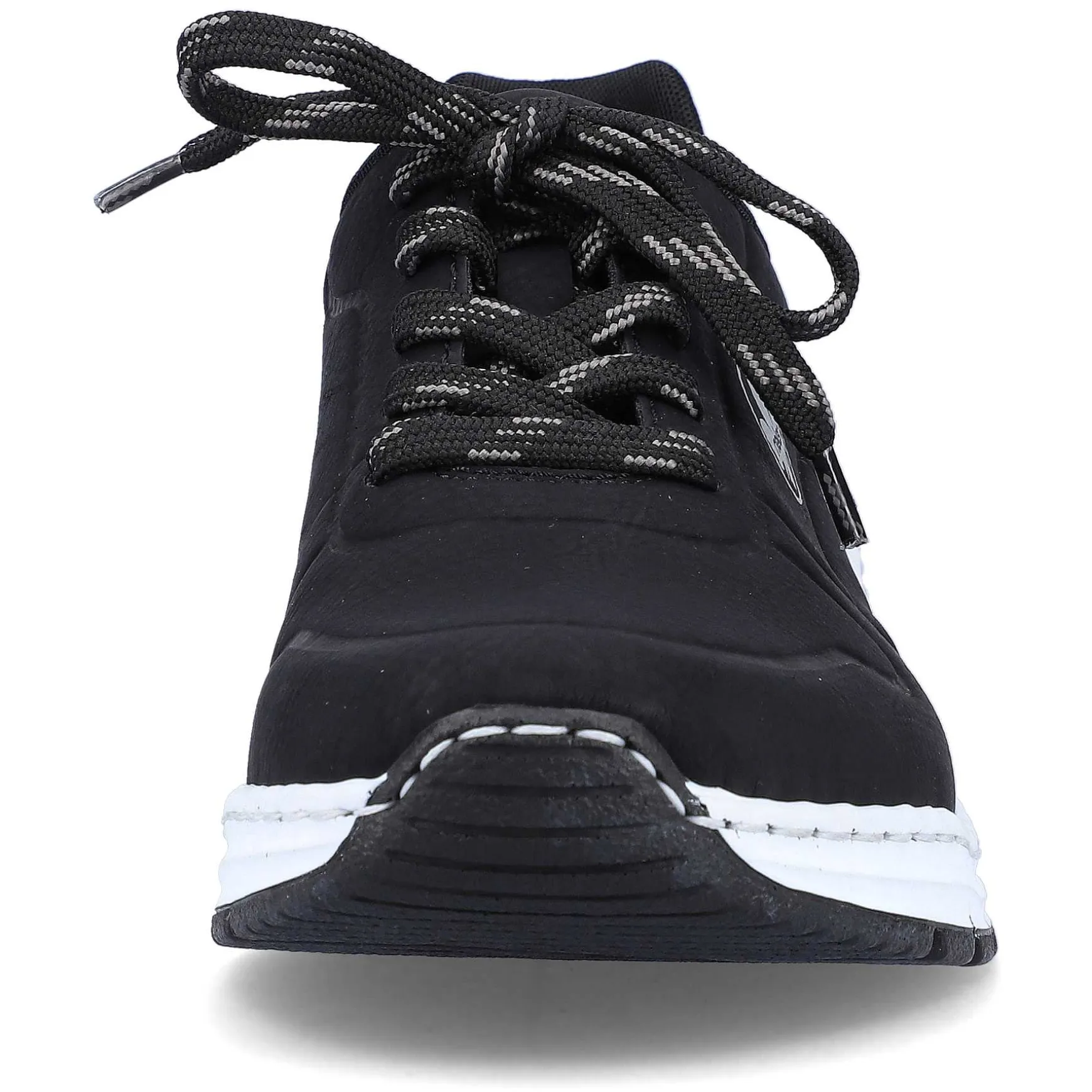 Once A Sneaker, Always A Sneaker. With These Everyday Night Black Rieker Low Sneakers For Women You Are Always Well Dressed And Can Rely On Maximum Comfort. The Gray And Black Lacing Ensures That The Shoe Always Fits Well. The Embroidered Logo On The Side Adds That Certain Something. With The Shock-Absorbing And Lightweight Sole, Your Feet Will Be Pampered With Every Step. The Shoe Has A Padded And Removable Insole, Which Is An Impressive Comfort Feature. The Model Is Cut In An Extra Wide H And Ensures Enough Space For The Foot. Feel Good Included!