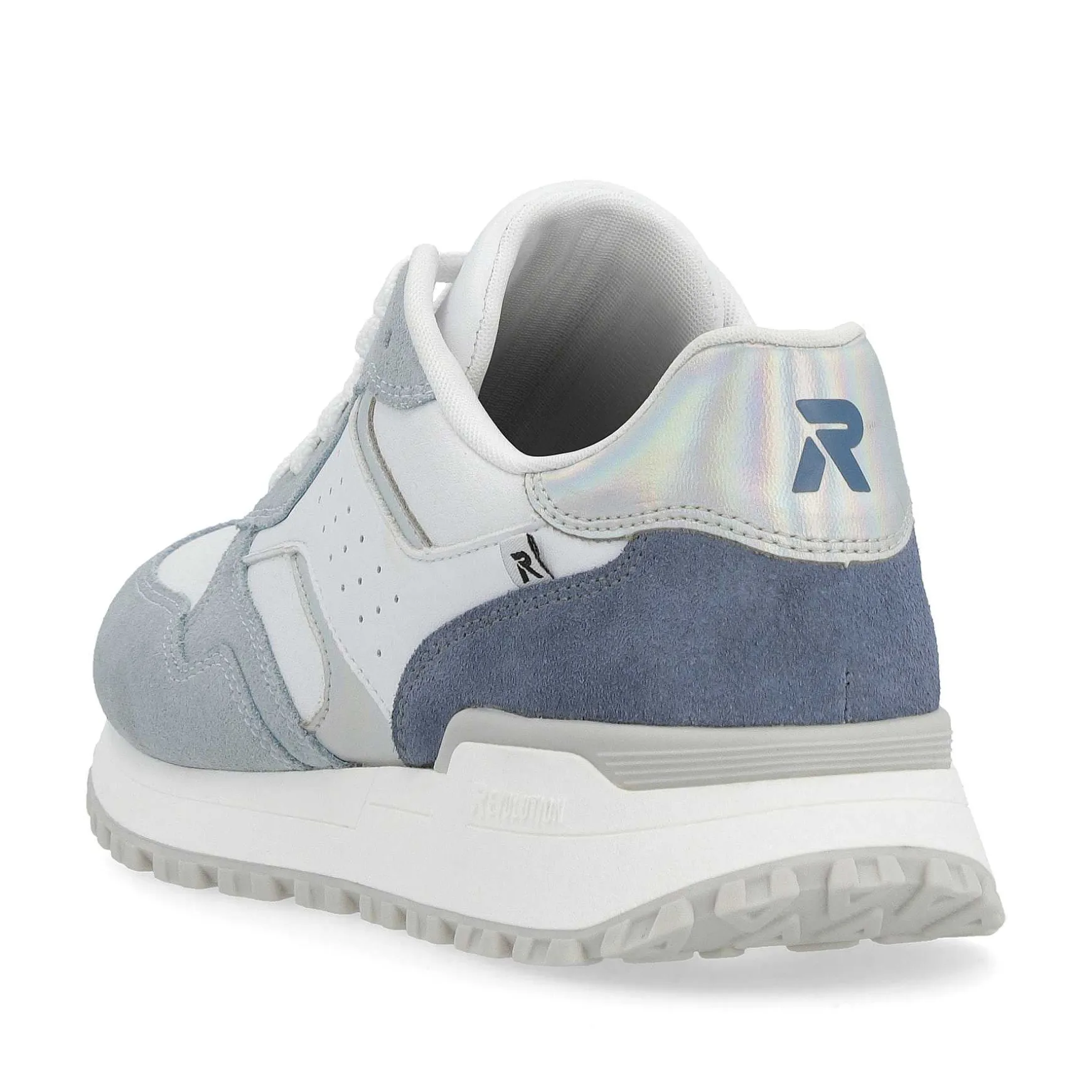 This Sport & Style Rieker Sneaker Low For Women In Blue And White Metallic Is Made Of High-Quality Suede. The Lighttr Sole Guarantees Perfect Grip On Various Surfaces. The Removable, Soft Insole Provides Cushioning For Your Steps. Includes An Extra Pair Of Shoelaces For Replacement.