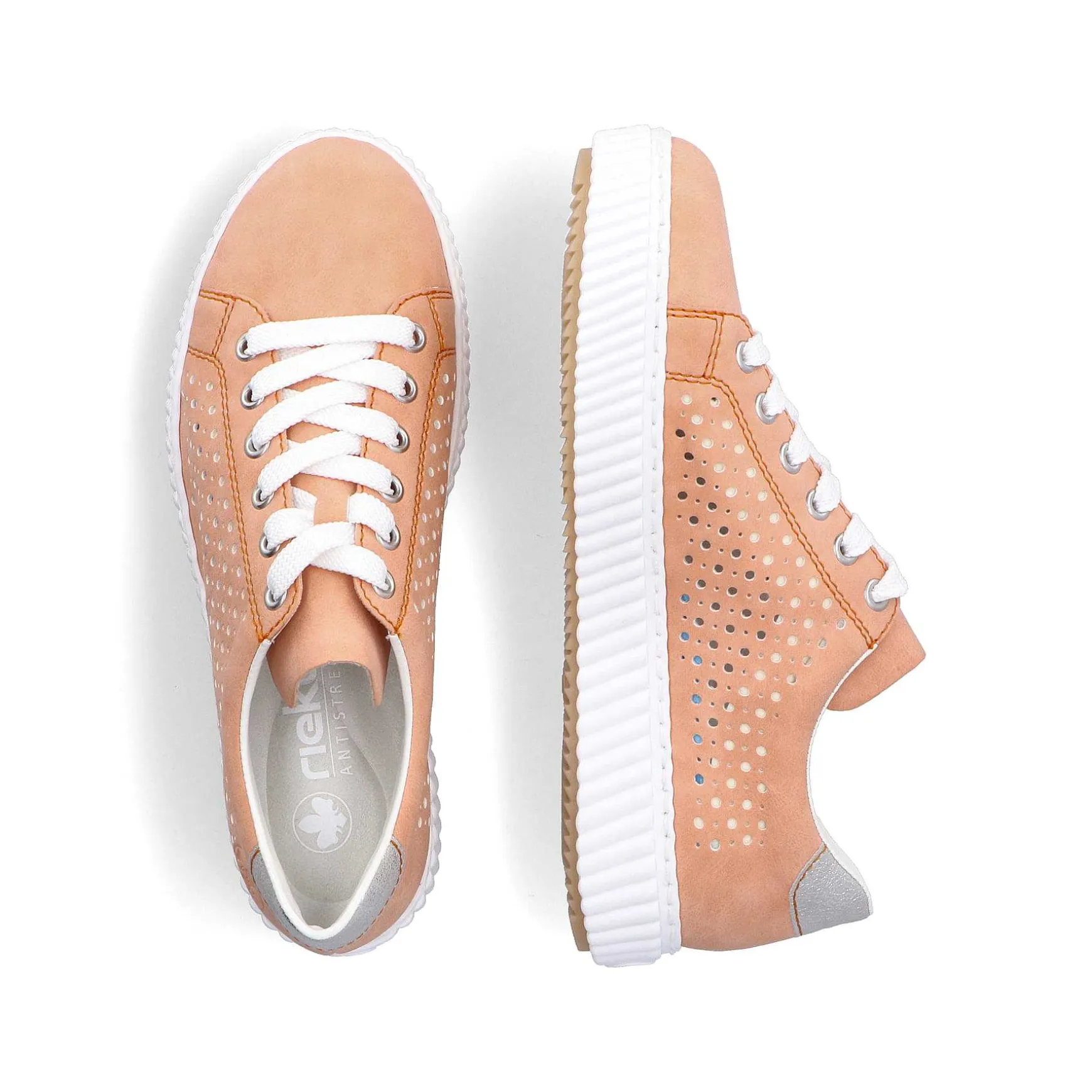 Comfort And Good Looks – That’S Possible! These Pastel Orange Rieker Sneakers Low For Women Guarantee A Heavenly Wearing Experience. The Bright Lacing Ensures That The Shoe Always Fits Well. The Openwork Style Is A Beautiful Eye-Catcher. The Grippy Sole Makes Every Step A Safe Affair. The Padded And Removable Insole Provides Comfort And Functionality For Every Day. So Let’S Go!