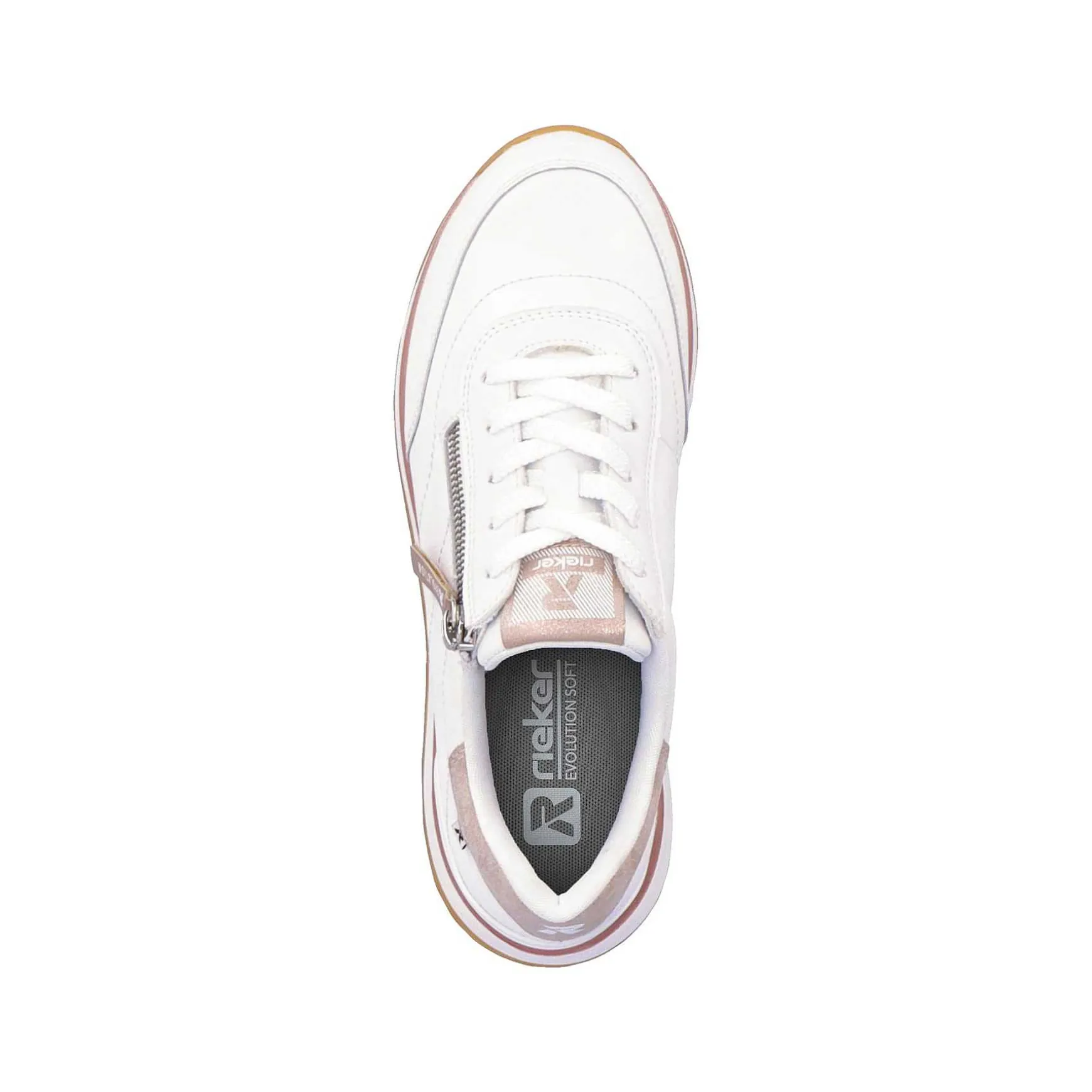 These White Sport & Style Rieker Sneakers Low For Women Are Made Of High-Quality Smooth Leather And Are Super Light And Flexible Thanks To The Eva/Rubber Sole. The Insole Is Removable And Softly Padded. The Sneakers Have The Top Combination Of Zipper And Lacing For Quick Entry.