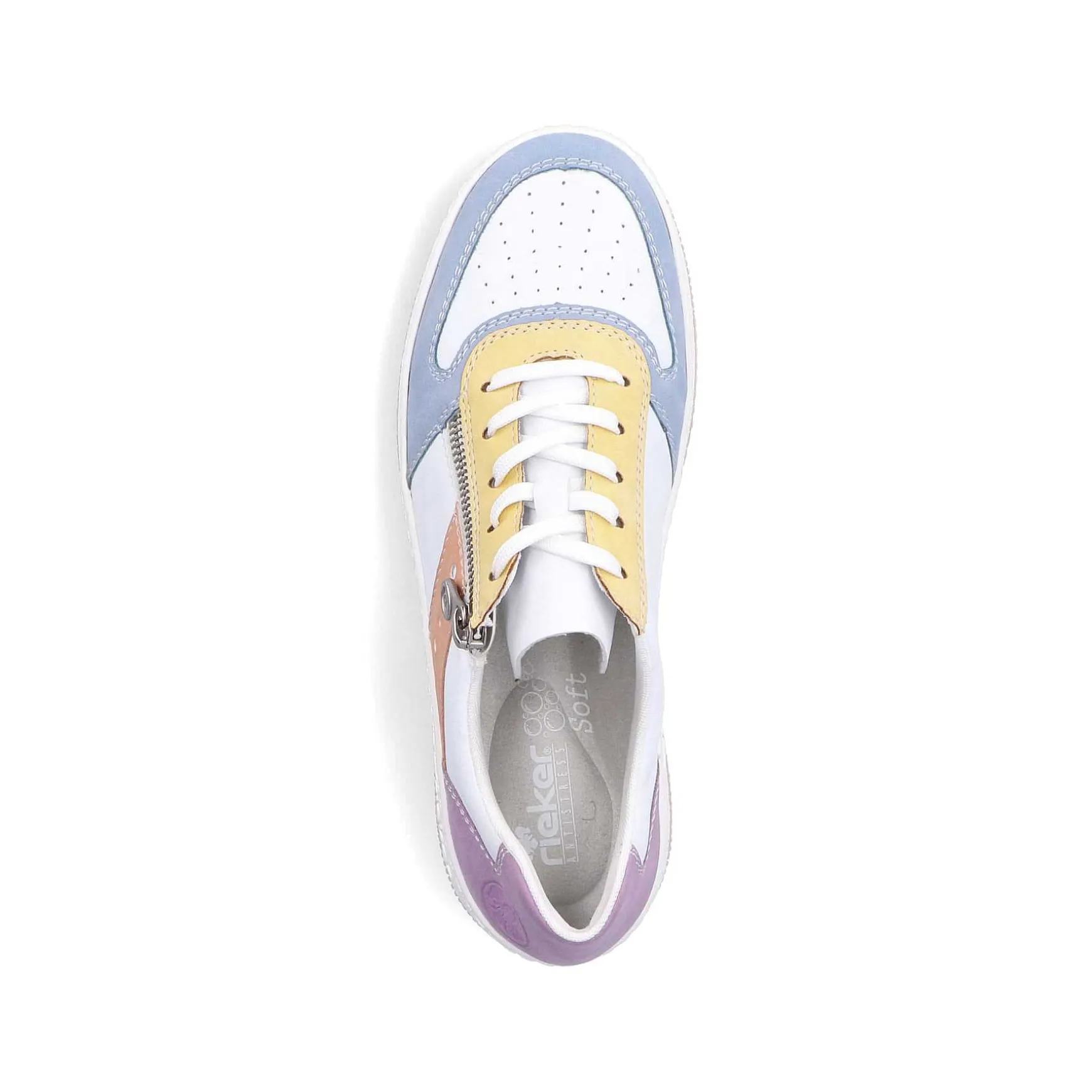 These White And Colorful Sport & Style Rieker Sneaker Low For Women Are Made Of High-Quality Faux Leather And Have The Top Combination Of Zipper And Lacing. The Abrasion-Resistant Tr Sole Provides Good Traction, Is Durable And Provides A Good Grip On Various Surfaces. The Insole Is Softly Padded And Easy To Remove.