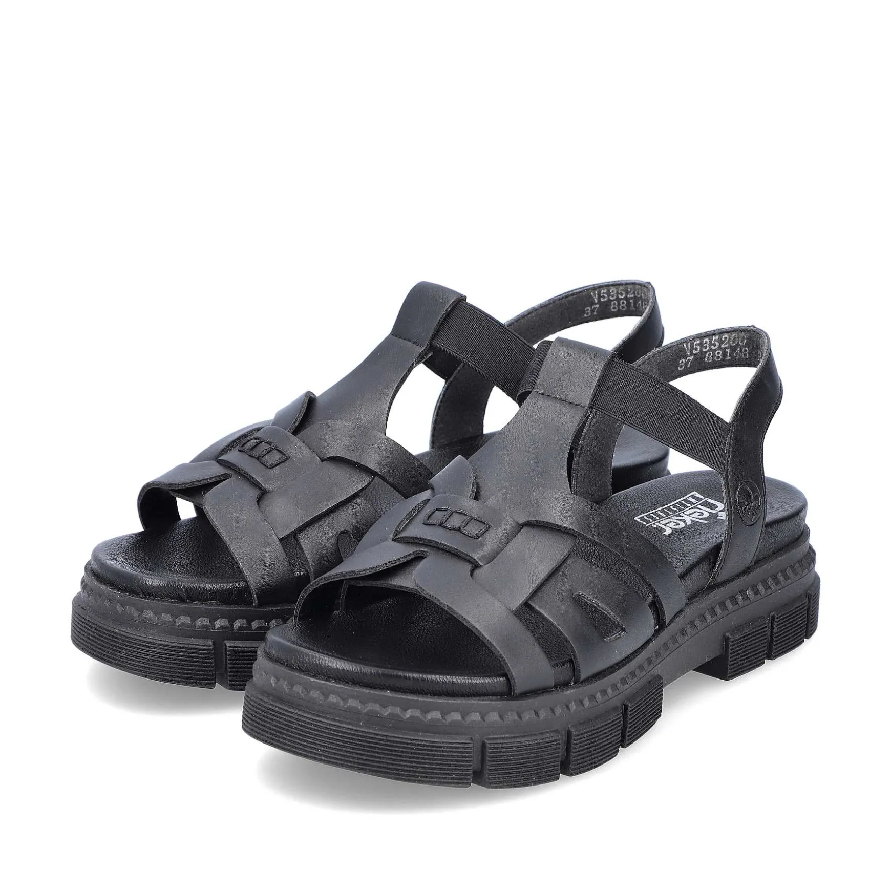 We Love Black! These Asphalt Black Faux Leather Strappy Sandals From Rieker Have Been Crafted Using A Completely Vegan Manufacturing Process And Are Made From 100% Vegan Materials. The Elastic Insert Makes It Particularly Easy To Put On And Take Off. The Wide Straps, Together With The Heel Strap, Ensure Optimal Support. The Non-Slip And Light Platform Sole Ensures Good Grip. In Addition, The Slim E 1/2 Fit Provides Additional Support. All In One – Great!