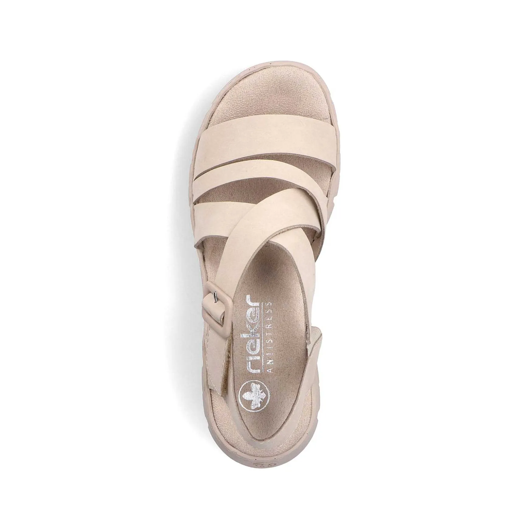 Ready For Summer? You Won’T Want To Take Off These Light Beige Rieker Strappy Sandals For Women. Optimal Support And A Perfect Fit Are Guaranteed By Crossed Straps, A Velcro Fastener And A Heel Strap. With The Shock-Absorbing And Lightweight Platform Sole, Your Feet Will Be Pampered With Every Step And The Insole Is Extra Soft. Thanks To The Narrow E 1/2 Fit, The Shoe Fits Like A Glove. Searched, Found!