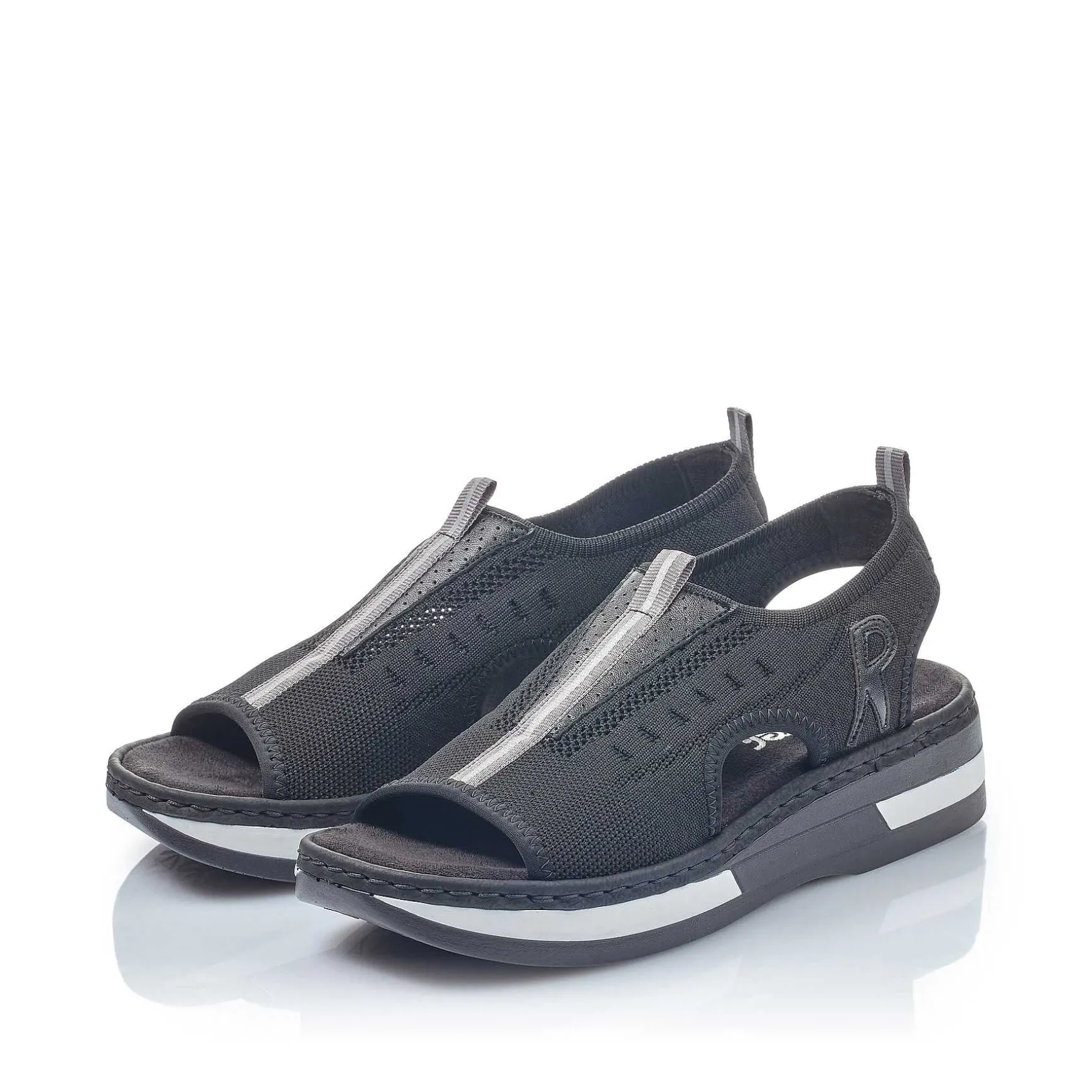 It’S Getting Airy! With This Everyday Night Black Rieker Strappy Sandal For Women You Are Always Well Dressed And Can Rely On Maximum Comfort. The Elastic Insert Makes It Easy To Put On And Take Off. The Sole Is Both Light And Shock-Absorbing, Offering A Double Feeling Of Comfort With Every Step. Another Plus Is The Extra Soft Insole. In Addition, The Slim E 1/2 Fit Provides Additional Support. What More Do You Want?