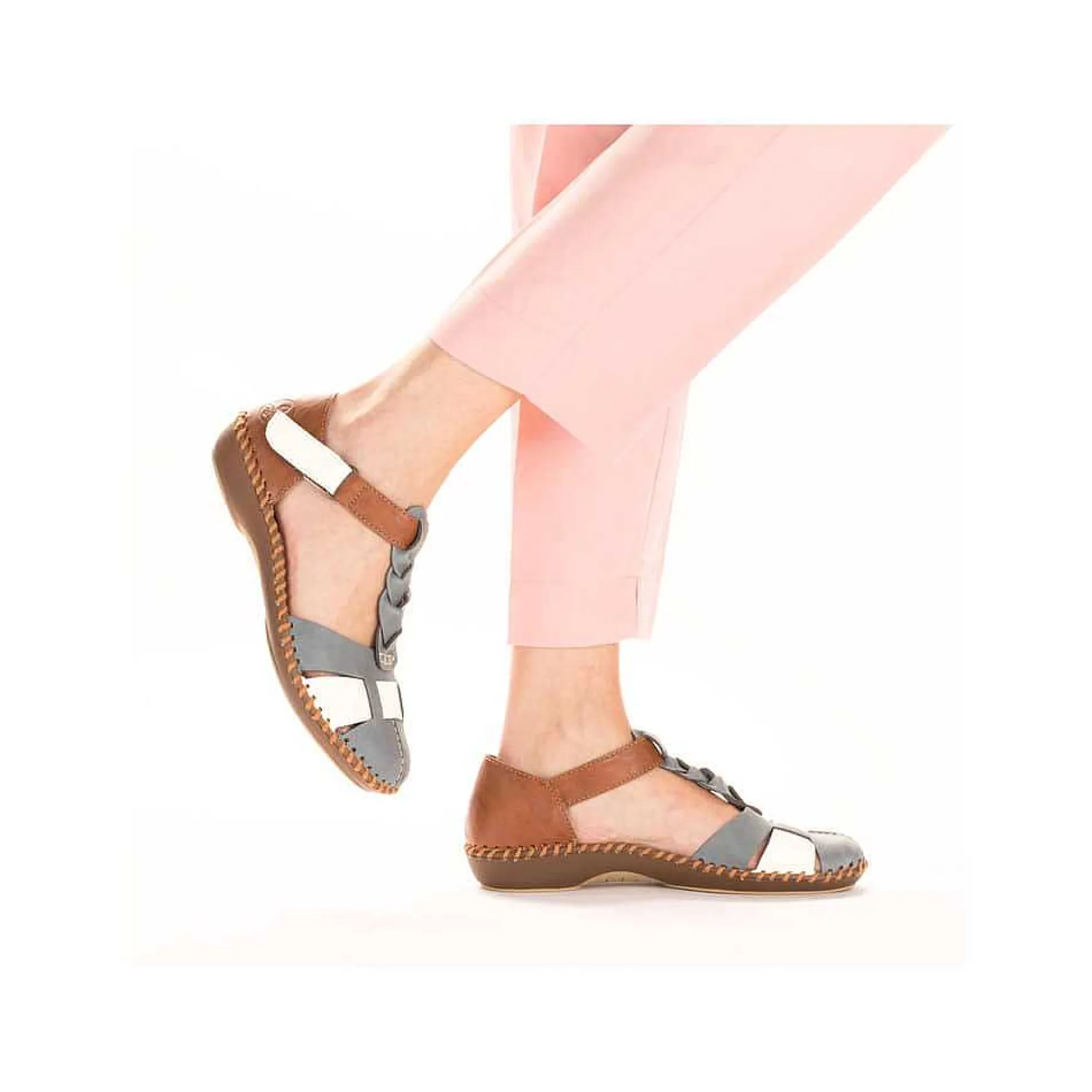 Rieker Women’S Strappy Sandals Sky Blue-Nut Brown