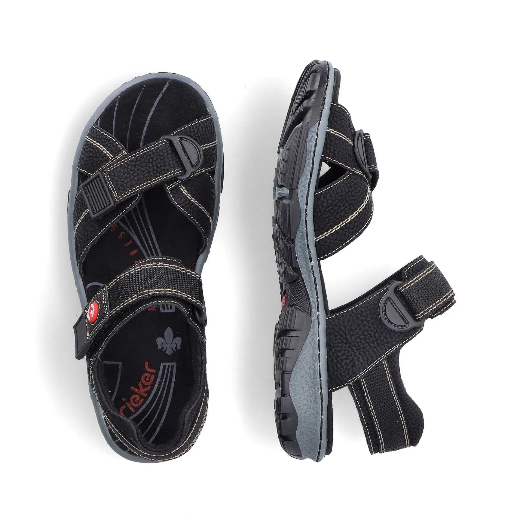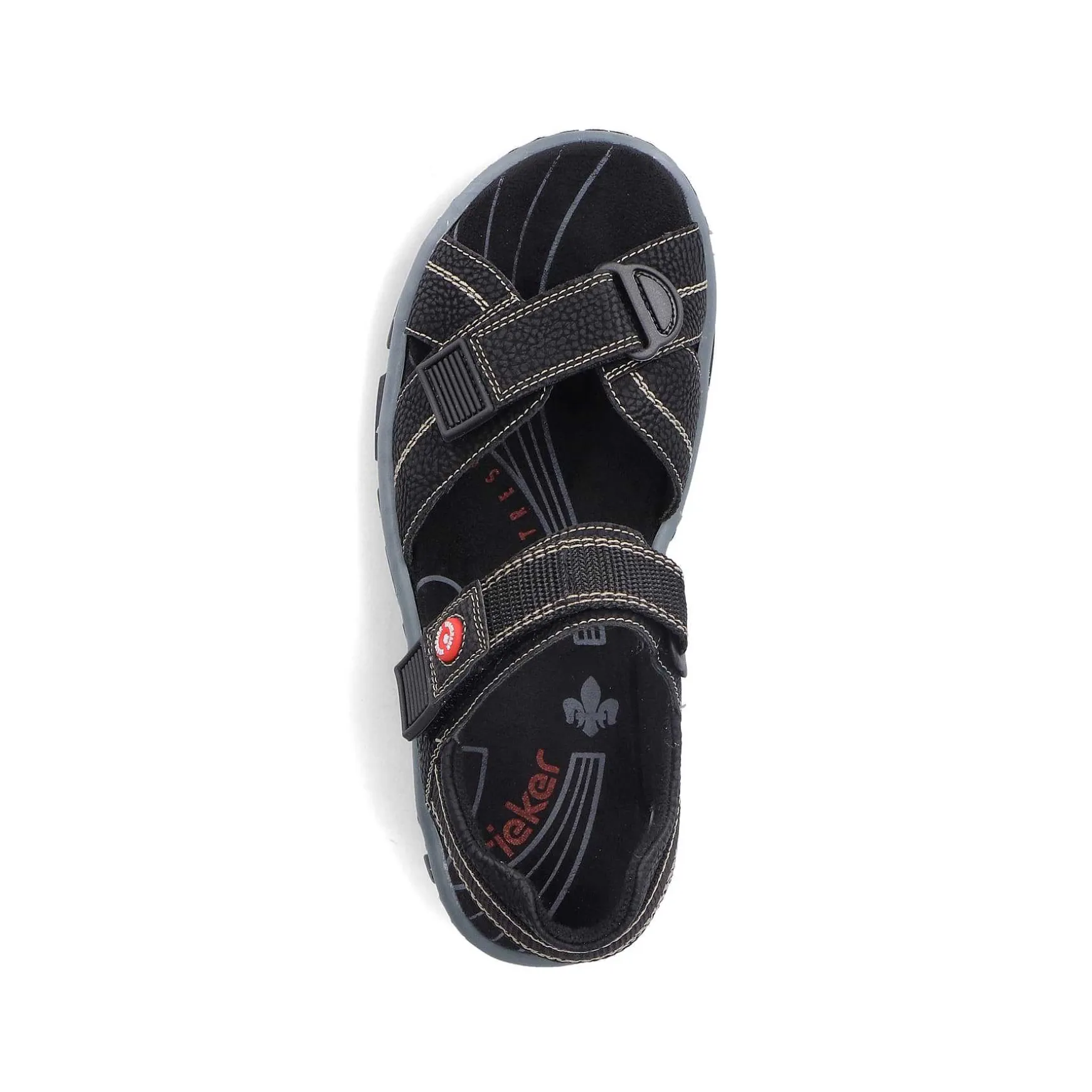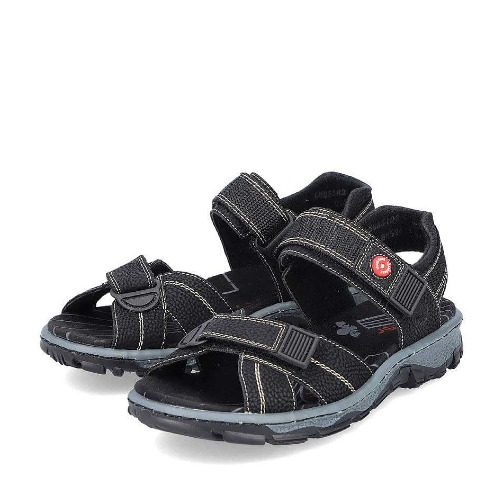 Happy Feet, Happy Life! The Asphalt Black Rieker Trekking Sandals For Women Are Not Only A Real Eye-Catcher, But Also Incredibly Comfortable For Everyday Wear. Crossed Straps And A Velcro Fastener, Together With The Wide Heel Strap, Ensure Optimal Support. The Decorative Seams Perfectly Round Off The Modern Design. The Non-Slip Sole Impresses Across The Board. The Slim E 1/2 Fit Also Offers Additional Support. Attention, Favorite Shoe Potential!