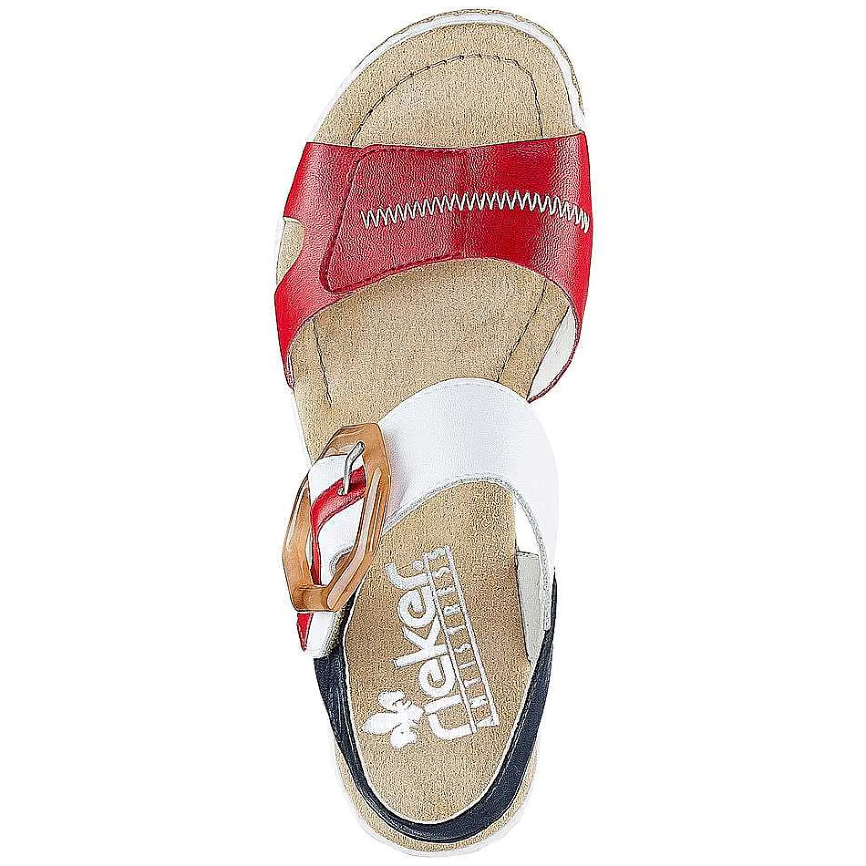Rieker Women’S Wedge Sandals Fire Red-Pure White