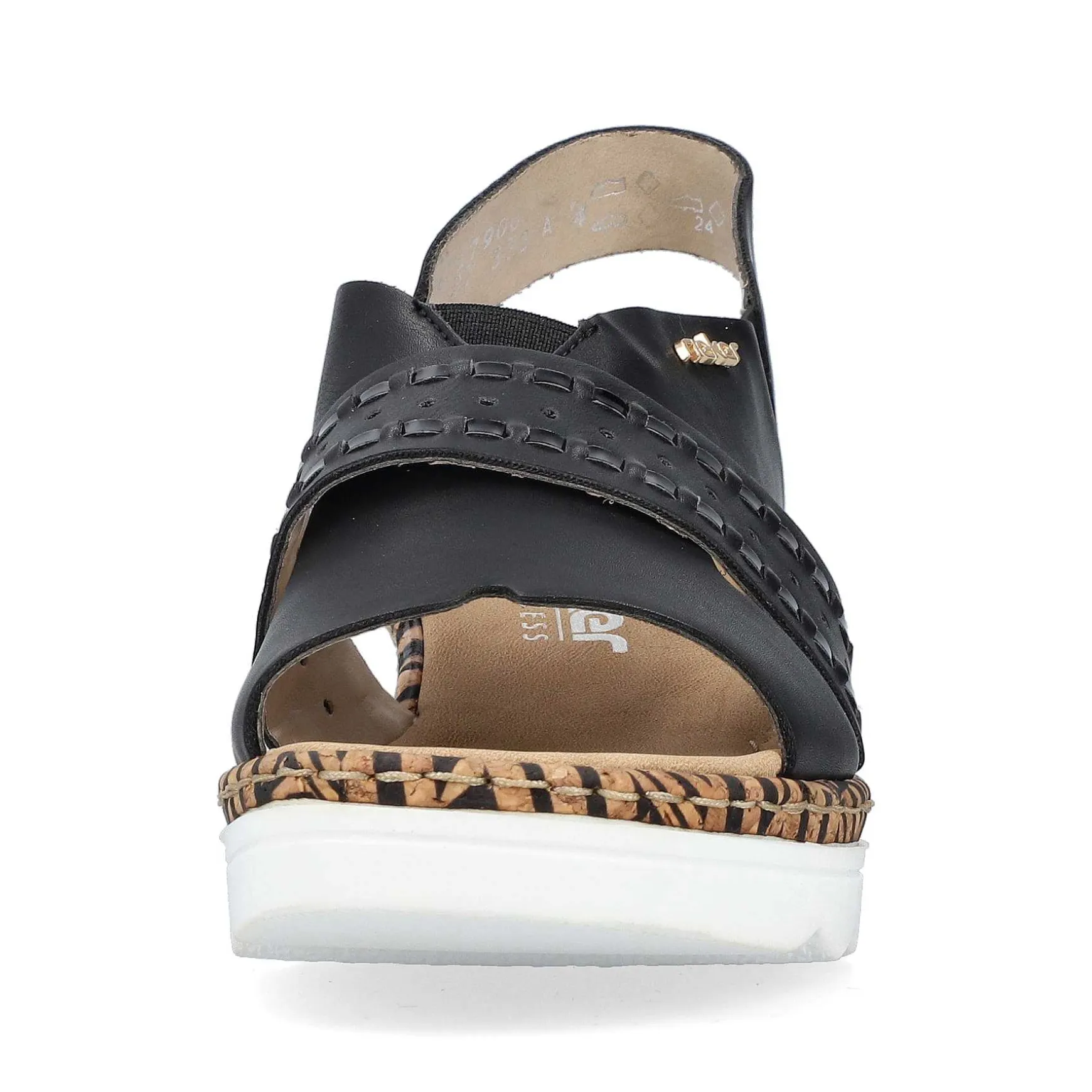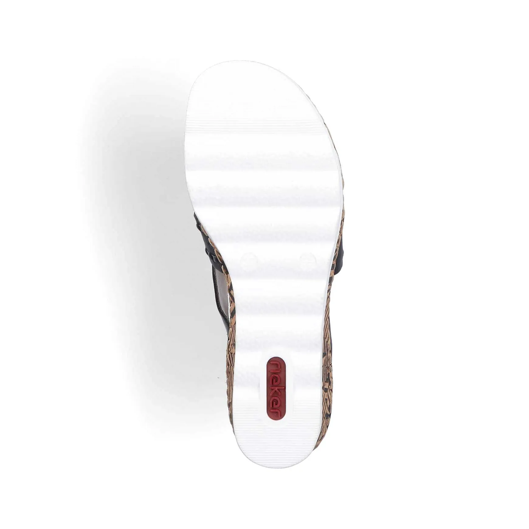 Black Beauty! These Midnight Black Rieker Wedge Sandals Have Been Elaborately Crafted. Optimal Support And A Perfect Fit Are Guaranteed By Straps, Elastic Inserts And A Heel Strap. The Tropical Pattern On The Sole Adds That Certain Something. The Sole With A Wedge Heel Is Both Shock-Absorbing And Very Light, Offering A Double Feeling Of Comfort With Every Step. All In One – Great!